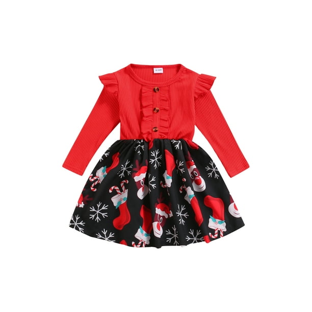 Faroot Toddler Girl Dress Christmas Clothes Cartoon Printed Patchwork Long Sleeve Dress 1 6t Walmart Ca